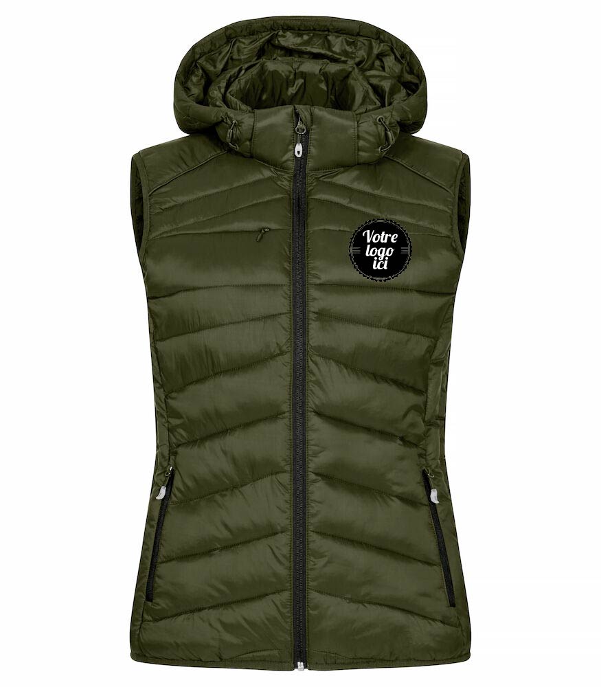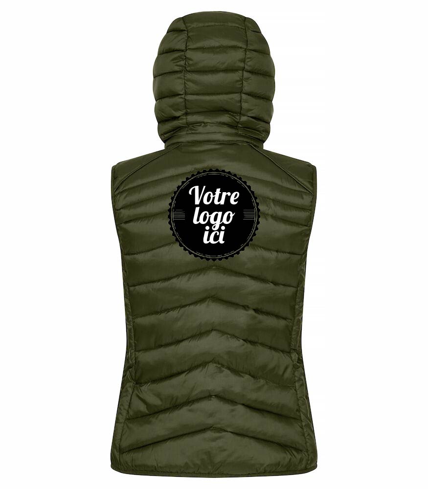 Bodywarmer doudoune chaud et léger – 100% polyamide recyclé – 3 poches extérieures zippées – 2 poches intérieures – Bande élastique taille + poignet – capuche amovible (uniquement référence femme ) – Passe écouteurs Zip ton sur ton pour 99 et 580 / Zip noir pour 75