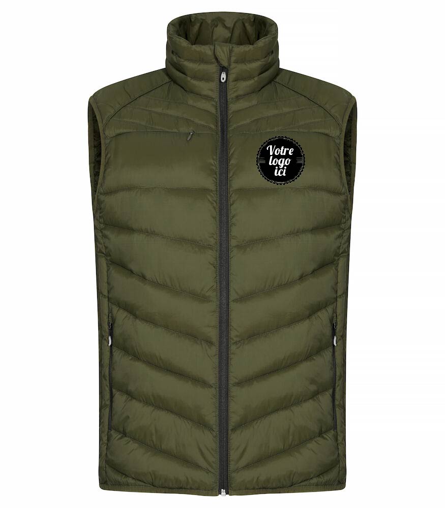 Bodywarmer doudoune chaud et léger – 100% polyamide recyclée – 3 poches extérieures zippées – 2 poches intérieures – Bande élastique taille + poignet – capuche amovible uniquement pour la version femme – Passe écouteurs Zip ton sur ton pour 99 et 580 / Zip noir pour 75