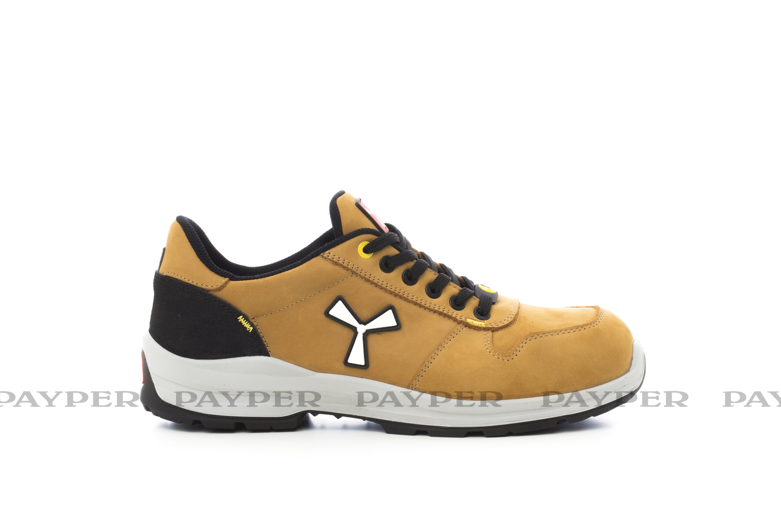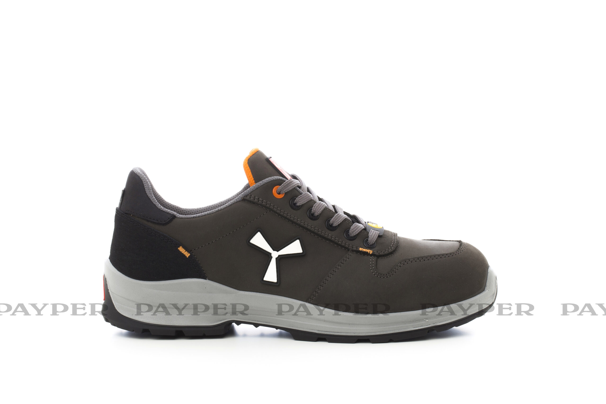 Chaussure de sécurité antistatique basse pour homme, tige en cuir hydrofuge et respirant, doublure interne (sur toute la surface interne) respirante et résistante à l’abrasion, 6+6 œillets metalfree, contrefort en grain pampas avec insert réfléchissant, embout en aluminium pressé, orthèse plantaire amovible Ortholite X40 016, semelle en feuille textile certifiée anti-perforation, cambrion anti-entorse, bout dur en fer à cheval, première de montage en polyuréthane ultra-léger, amortisseur MASTER BALANCE en PU polyéther à haute ténacité et densité équilibrée, semelle extérieure XTRAIL GRIP en TPU avec contrefort et bout dur.
