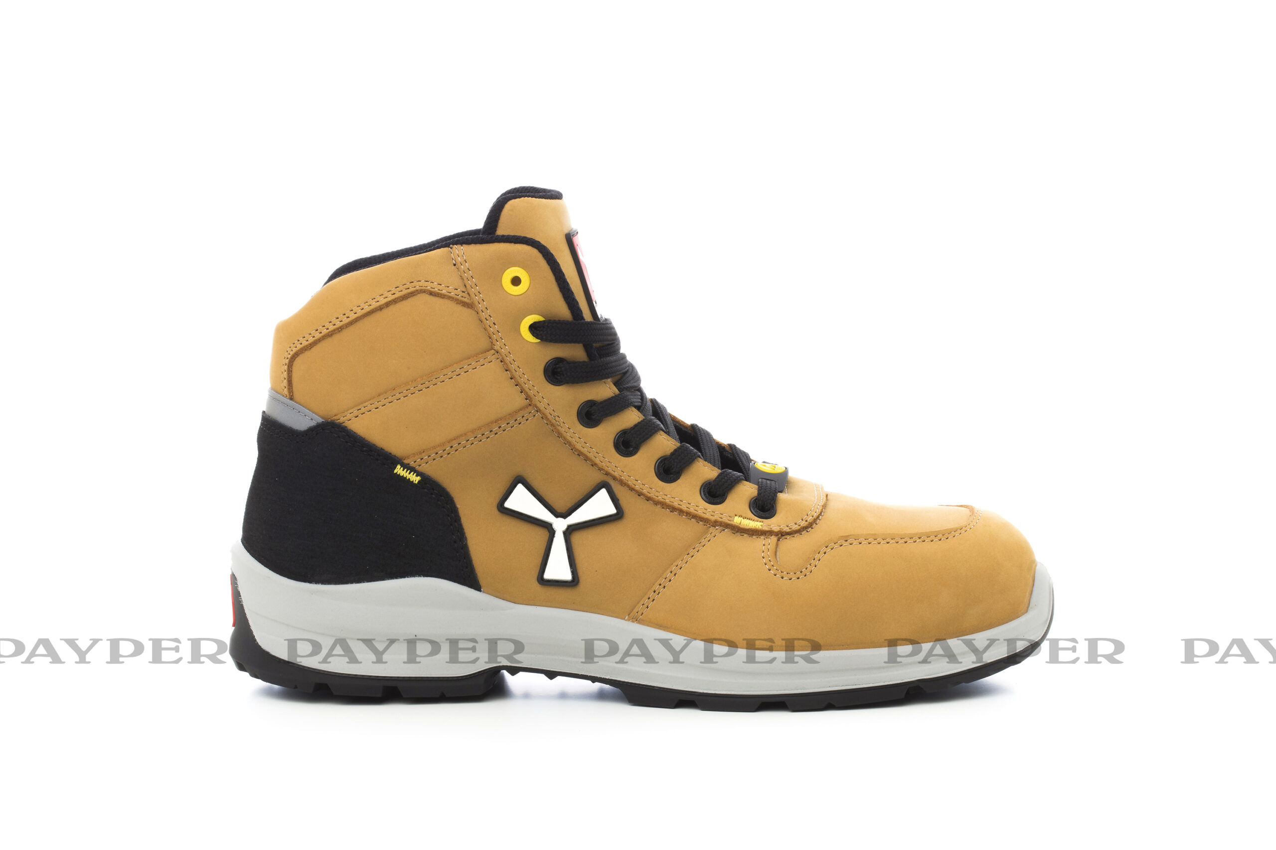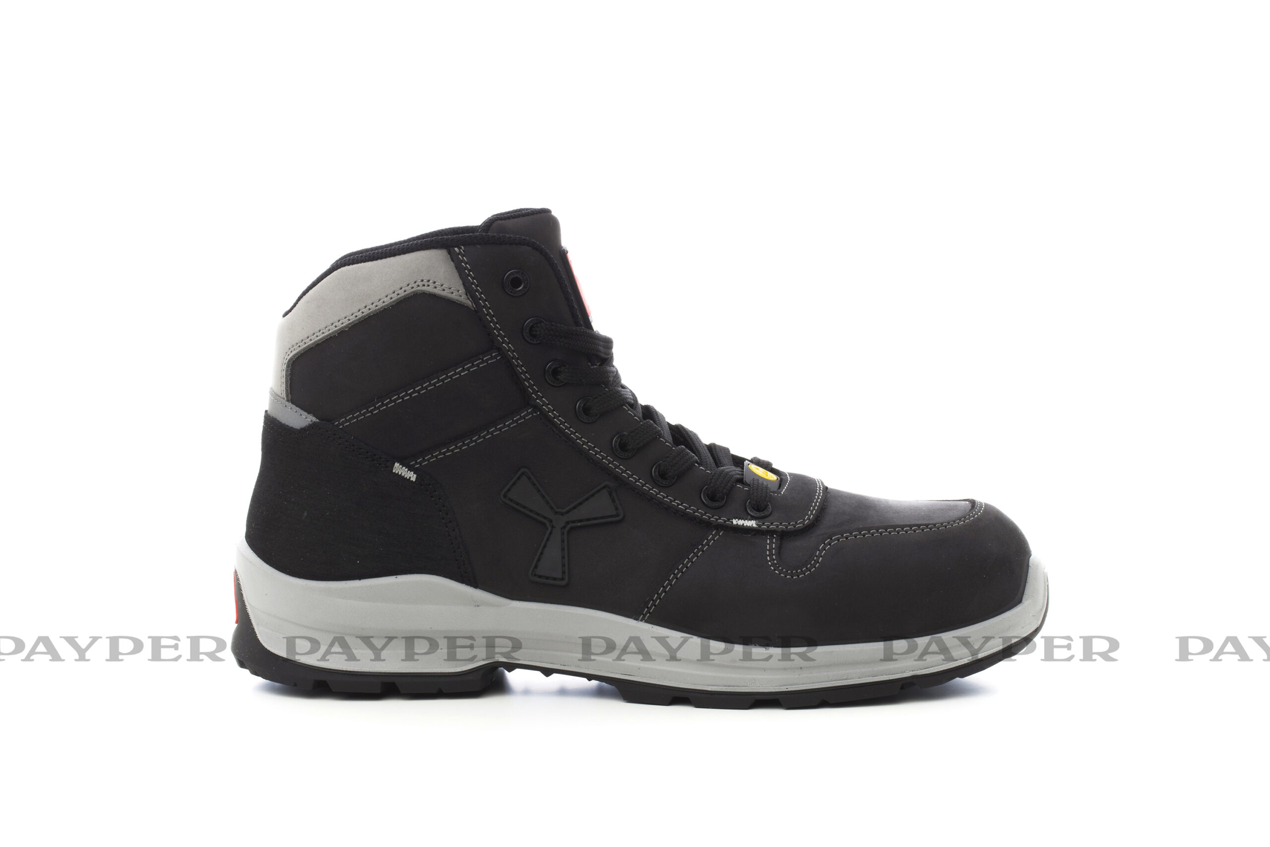 Chaussure de sécurité antistatique moyenne pour homme, tige en cuir hydrofuge et respirant, doublure interne (sur toute la surface interne) respirante et résistante à l’abrasion, 8+8 œillets metalfree, contrefort en grain pampas avec insert réfléchissant, embout en aluminium pressé, orthèse plantaire amovible Ortholite X40 016, semelle en feuille textile certifiée anti-perforation, cambrion anti-entorse, bout dur en fer à cheval, première de montage en polyuréthane ultra-léger, amortisseur MASTER BALANCE en PU polyéther à haute ténacité et densité équilibrée, semelle extérieure XTRAIL GRIP en TPU avec contrefort et bout dur.