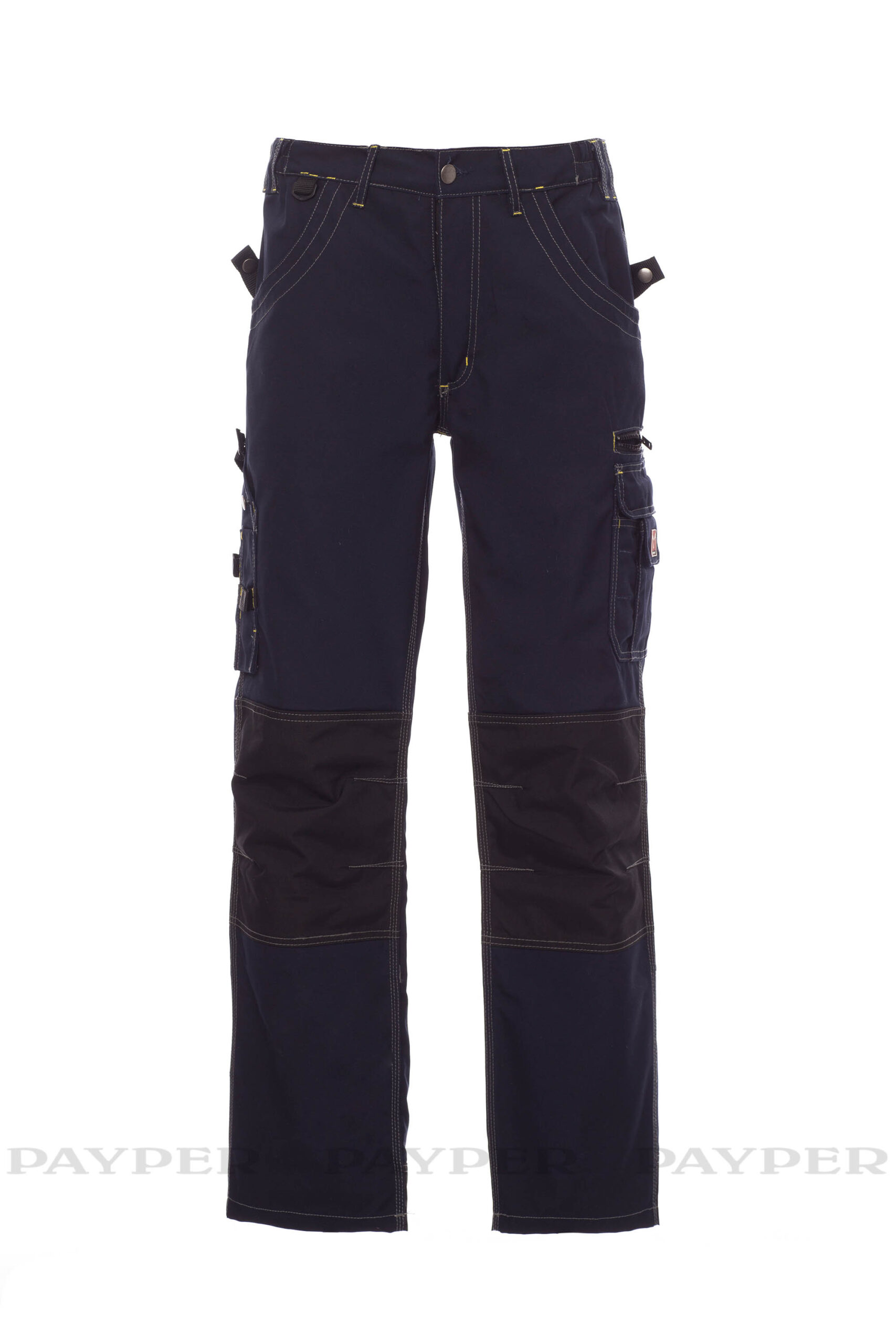 Pantalon homme multi-saison avec porte-genouillères en Cordura, élastiques latéraux et passants à la taille, fermeture par zip et bouton en métal, deux poches avant avec intérieur dans le même matériau que le pantalon, deux poches latérales multifonction avec porte-badge détachable et refermable, une poche avec zip, deux poches arrière ouvertes, porte-marteau . Inserts et surpiqûres en contraste, triple couture intérieur et extérieur jambes.