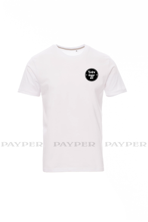 Tee-shirt pour homme, encolure ras le cou et manches courtes, col en bord côtes mixte spandex de 1,5 cm avec couture rabattue sur le devant, structure tubulaire.